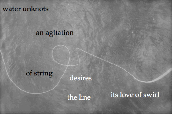 I made this from a photograph I took when my husband was fly-fishing. His line on the water’s surface created an image that somewhat reminded me of line drawings by Matisse, who said of the line, “One must always search for the desire of the line, where it wishes to enter or where to die away.”