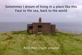 Hg sent us this poetry postcard, created from one of his own photos. He writes, The building is an abandoned World War II look-out post on a remote peninsula in the north-west of… Continue reading